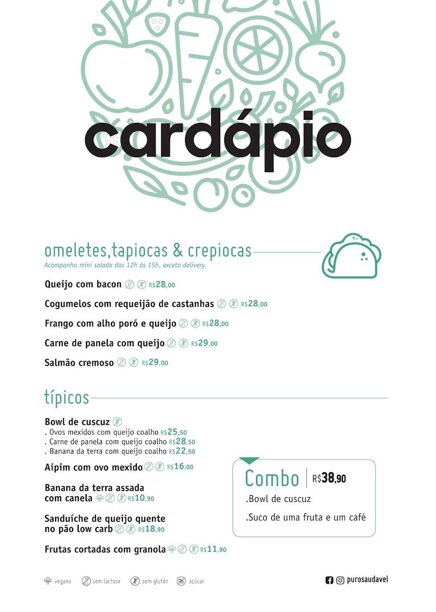 At Puro Saudável - Restaurante De Comida Natural Menu, you'll find a vibrant mix of fresh, wholesome dishes that embrace the natural flavors of Brazil. Located in the heart of Salvador's Pituba district, this cozy spot is dedicated to serving food that’s as good for the body as it is for the soul. The menu features a delightful range of plant-based and nourishing options, perfect for those looking for healthy yet delicious meals. From colorful salads and grain bowls to fresh juices and smoothies, there’s something for everyone who wants to eat clean without compromising on taste. Whether you’re in the mood for a light bite or a hearty meal, the variety of dishes ensures that your taste buds are always satisfied.